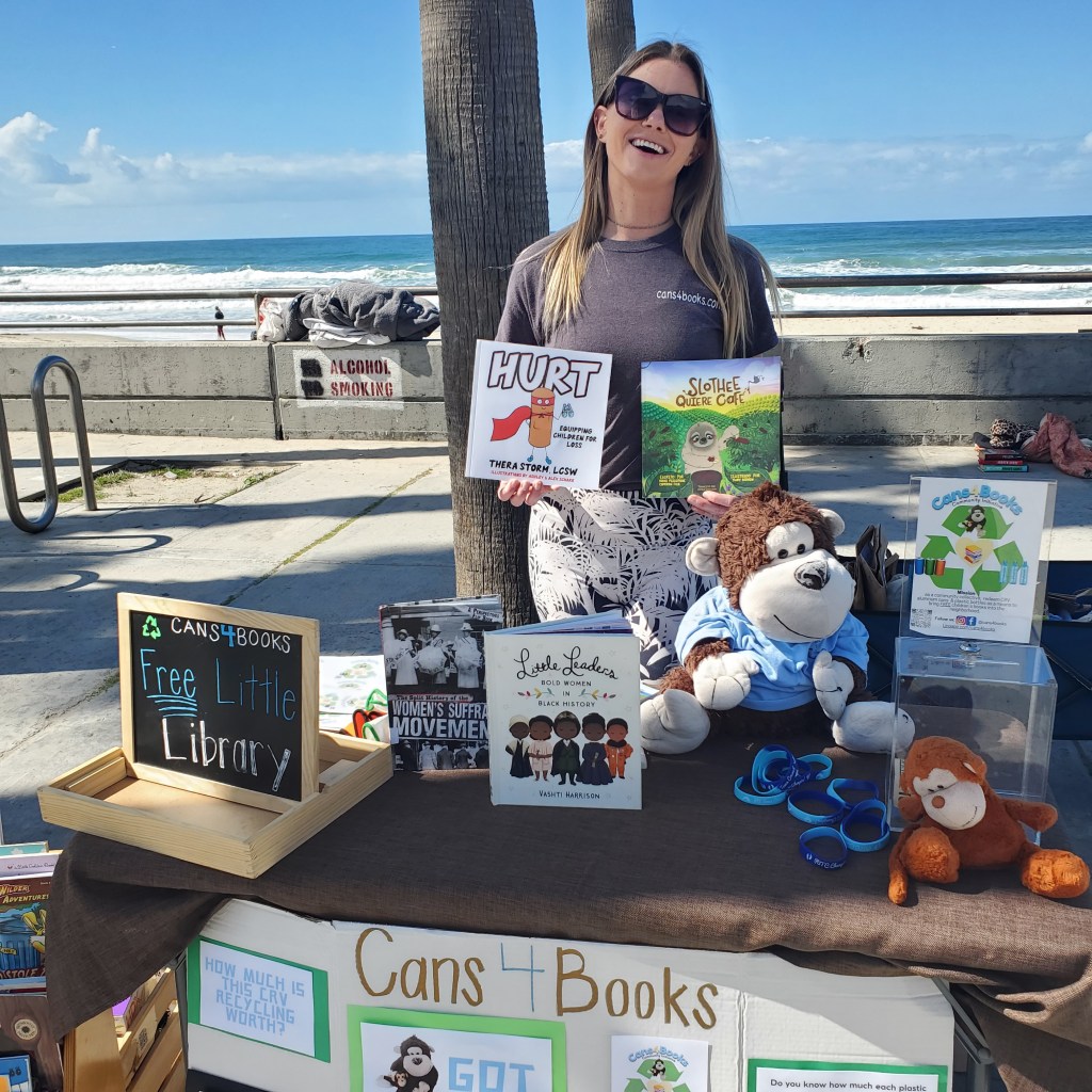 Cans4Books has humble beginnings. At the start of the pandemic in 2020, Trisha Goolsby noticed a lot more trash around the streets of San Diego. So while she nannied, she and the kids would pick up recycling on their block walk adventures.